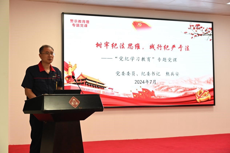 黨委委員、紀(jì)委書記熊兵安同志為全體黨員上黨紀(jì)學(xué)習(xí)教育暨警示教育專題黨課。